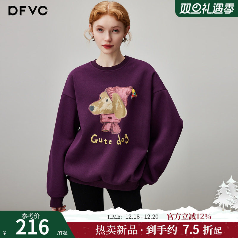 dfvc休闲百搭短款圆领套头卫衣女2025年冬季新款印花宽松加厚外套
