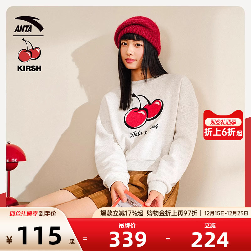 安踏×kirsh联名丨大樱桃短款套头卫衣女士休闲上衣162518745