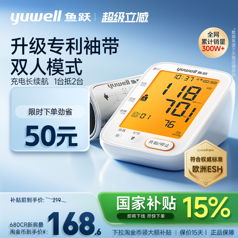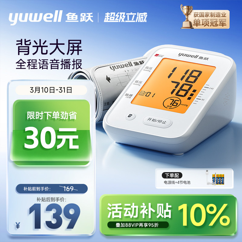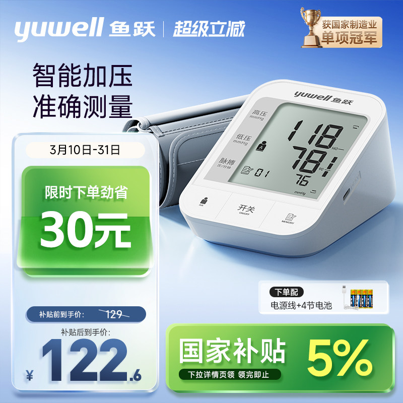 【国家补贴】鱼跃电子血压计臂式高精准测量仪家用测压官方旗舰店