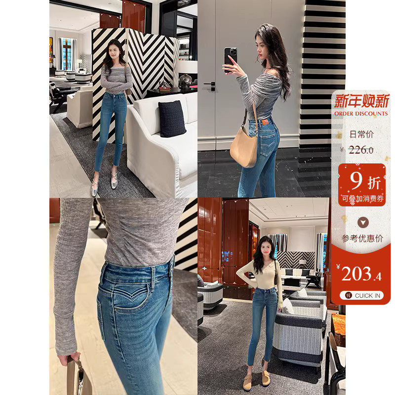 高级感!高腰显瘦九分牛仔裤女秋冬新款修身加绒紧身小脚铅笔裤潮