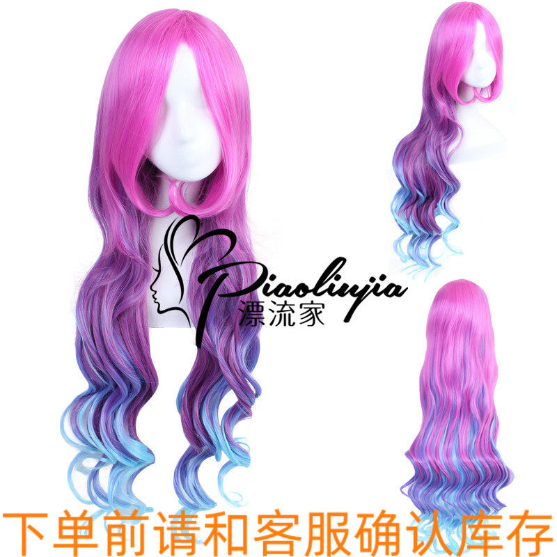 厄运小姐LOL英雄联盟 电玩女神娑娜 玫红色长发长卷发假毛cos假发