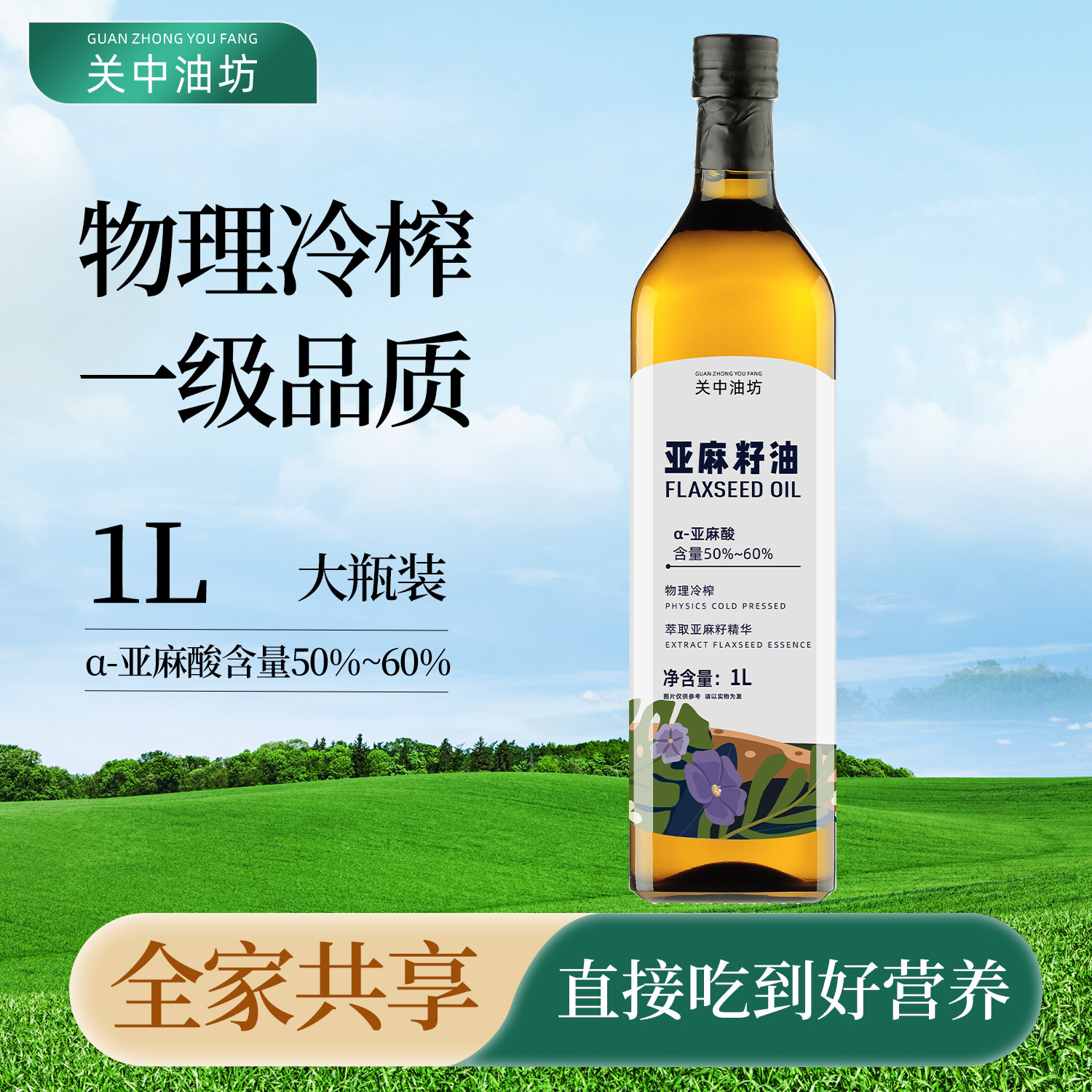 关中油坊 (gzyfoil) 亚麻籽油 压榨一级 胡麻油 月子油 食用油 1L