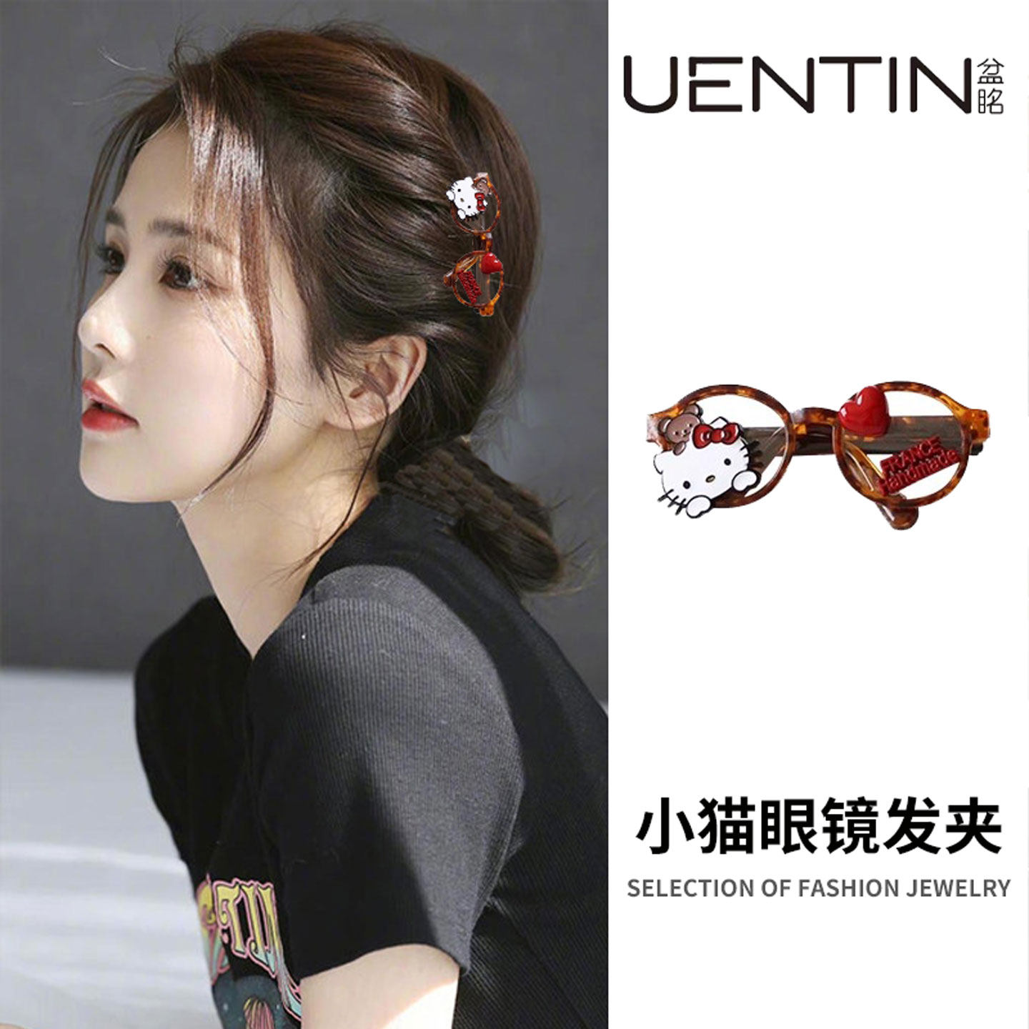 可爱卡通眼镜发夹边夹侧边刘海夹一字夹小猫爱心字母醋酸鸭夹头饰