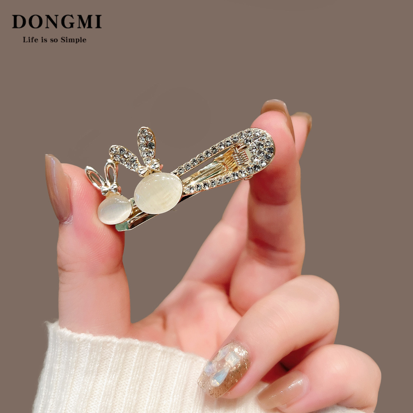 轻奢精致水钻小兔子可爱发夹头饰女侧边刘海夹一字夹发卡BB夹发饰