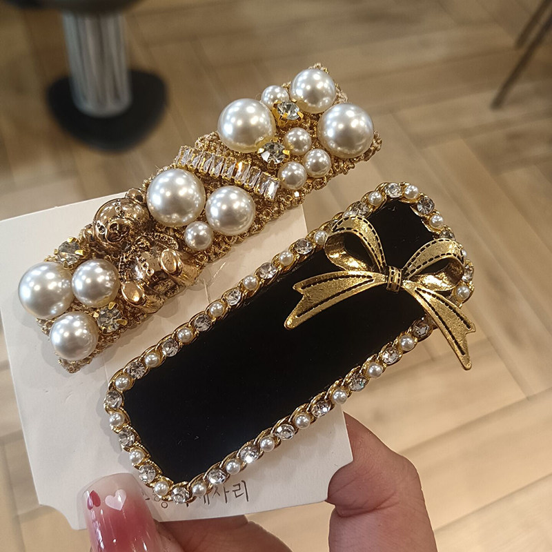 网红发夹格子bb夹刘海夹一字夹后脑勺发卡珍珠侧边夹发夹发饰女