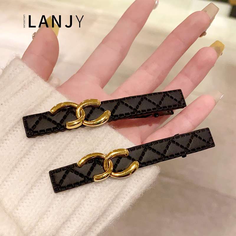 ins简约银色皮质菱格bb夹 高级感发夹边夹侧边 气质刘海夹一字夹