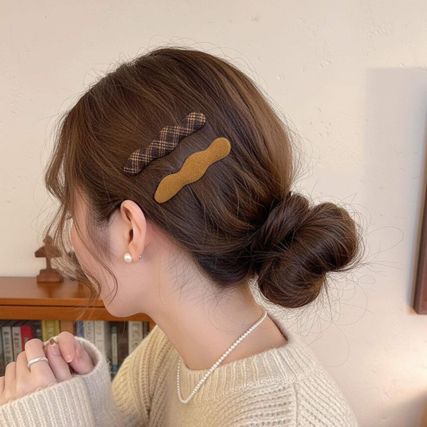毛呢格纹波浪发夹女秋冬2025新款前额碎发刘海夹一字夹发卡发饰