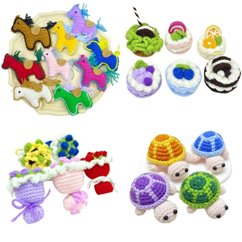成品编制DIY钥匙扣配件小饰品挂件手捧玫瑰花小马上有钱乌龟蛋糕