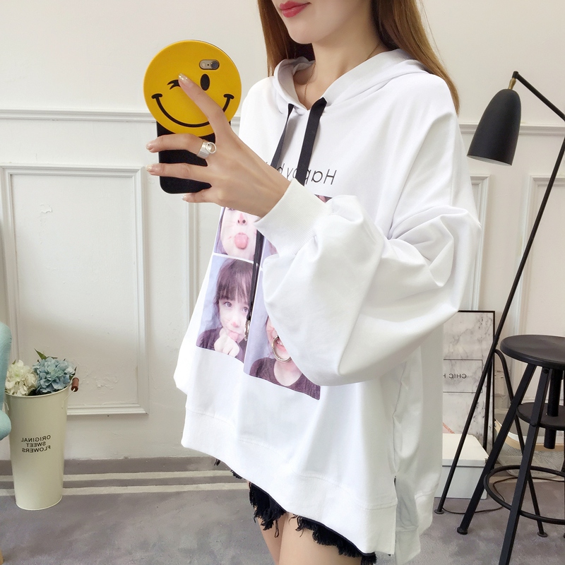 卫衣女秋季韩版ins原宿风印花长袖上衣宽松bf休闲连帽加绒外套潮
