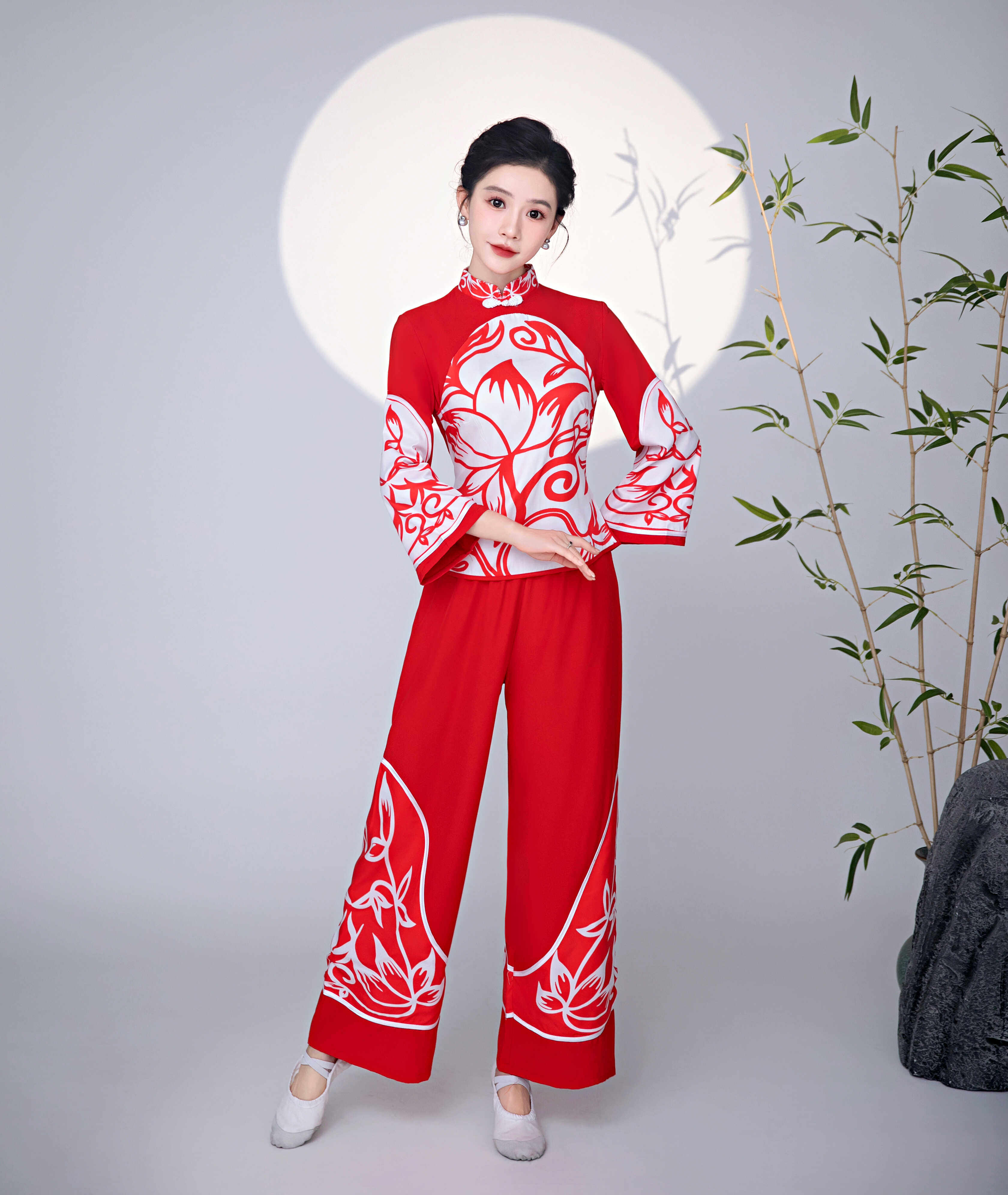 秧歌服演出服女2025新款灯笼舞蹈服扇子喜庆中国风现代广场舞套装