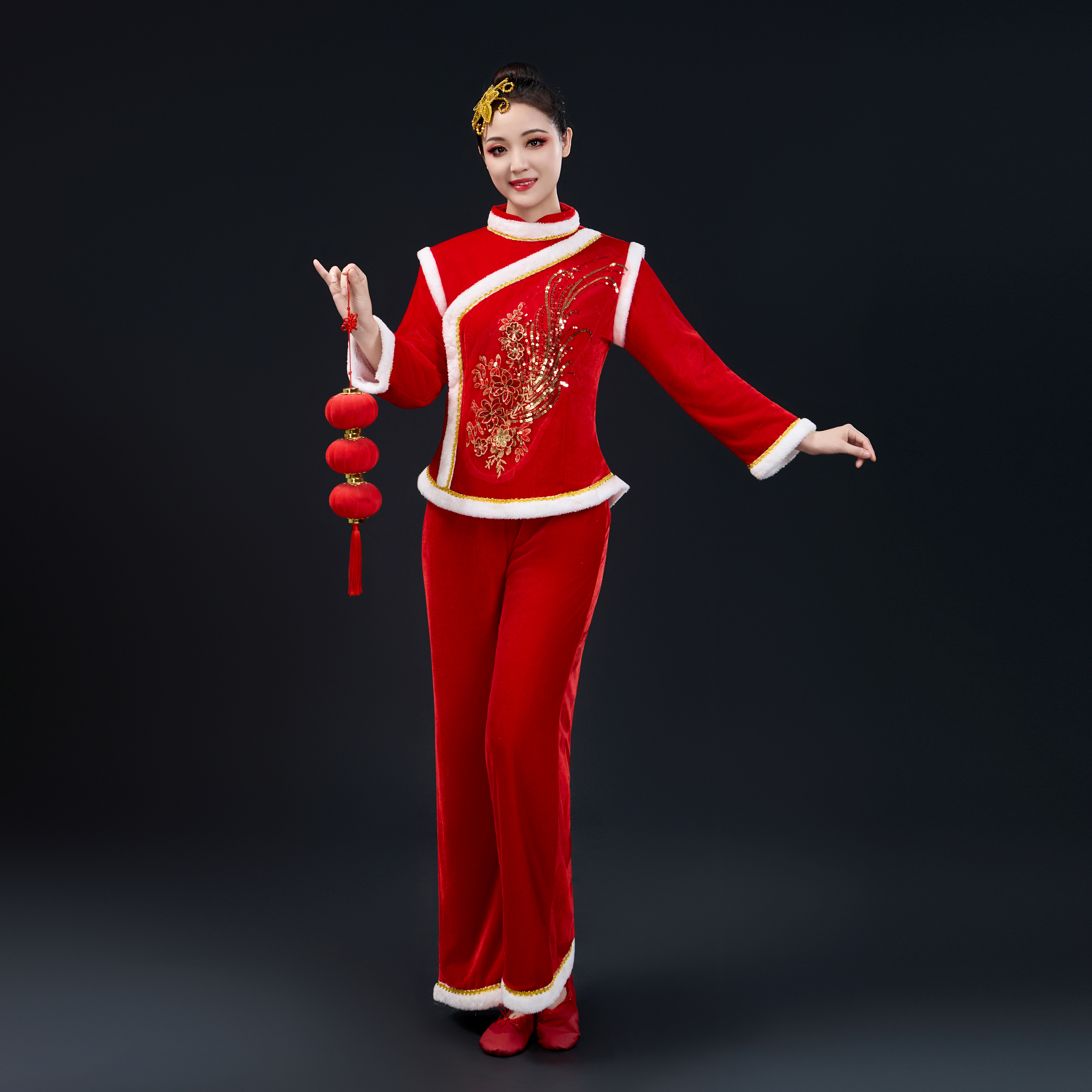 秧歌服演出服2025新款冬季东北腰鼓扇子民族舞蹈服中老年喜庆加厚