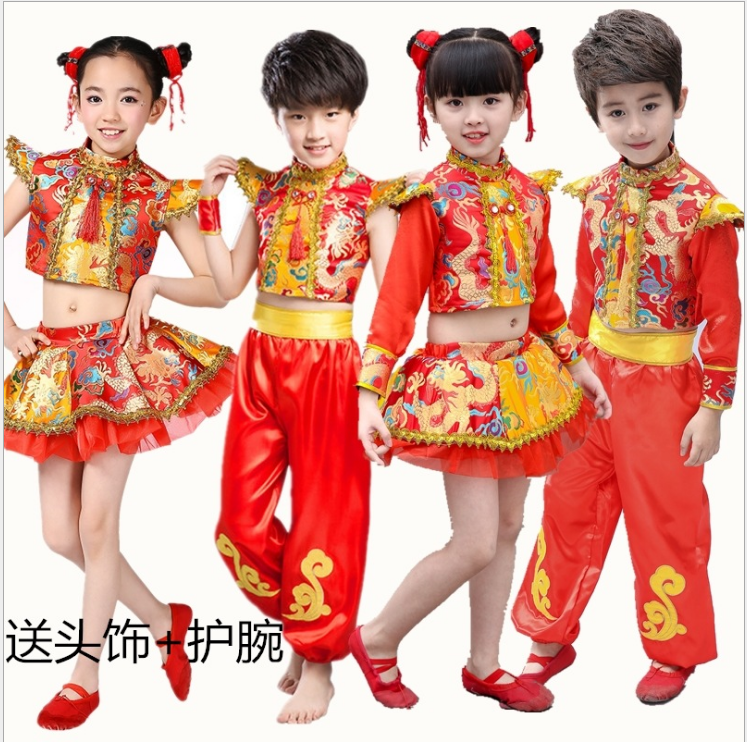 儿童喜庆秧歌服演出服打鼓服中国风中国红大鼓锣鼓舞蹈开门红表演