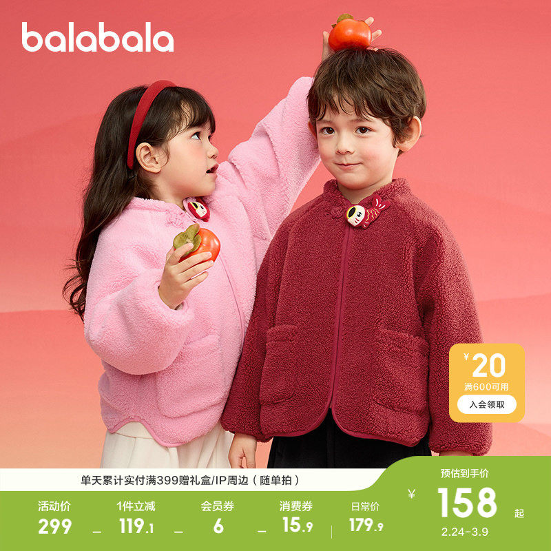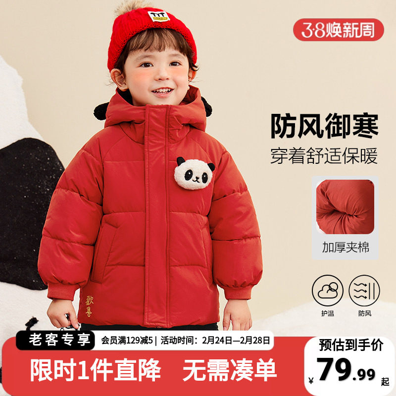 巴拉巴拉童装男童棉衣女童棉袄宝宝棉服冬装2025年外套红色拜年服