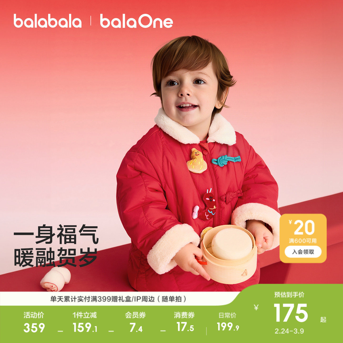 巴拉巴拉童装男童棉服新中式宝宝外套女童拜年服冬装2026棉袄红色
