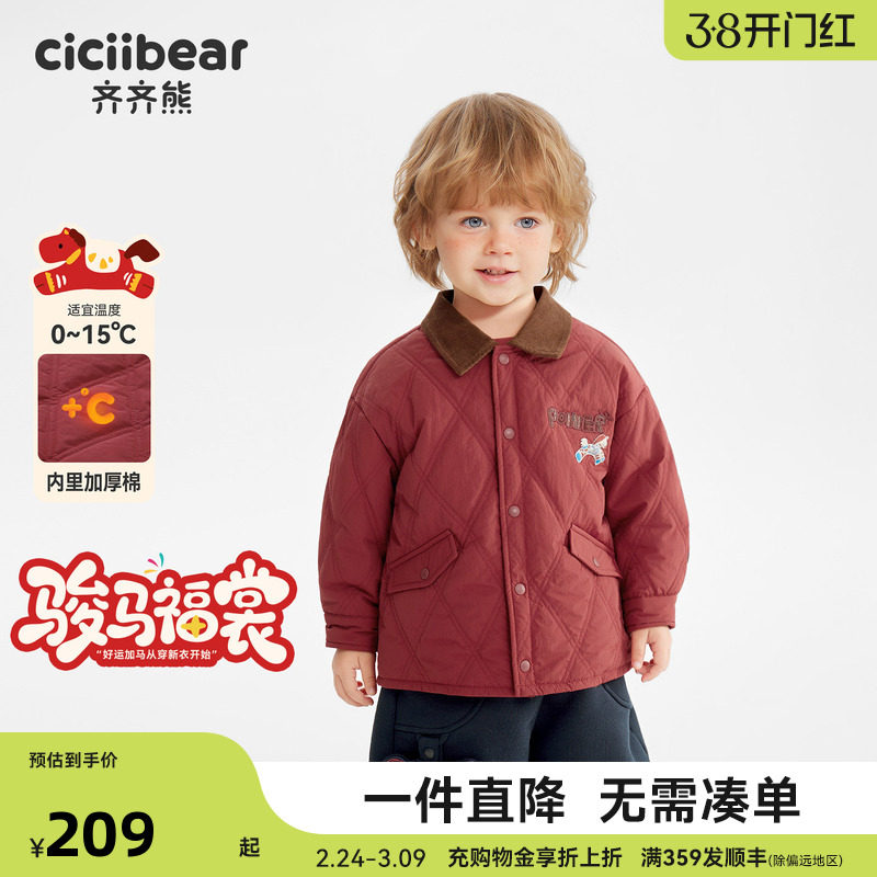 [羊羔绒绗棉]齐齐熊宝宝棉服男童夹棉外套秋冬装儿童棉袄加厚棉衣