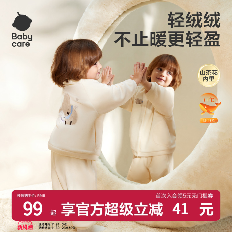 babycare儿童绒绒外套宝宝外出棉服男童女童秋冬保暖棉衣奥粒绒