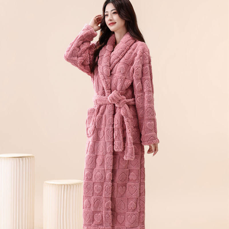 珊瑚绒睡袍女秋冬加厚加绒法式性感长款浴袍双面法兰绒睡衣家居服