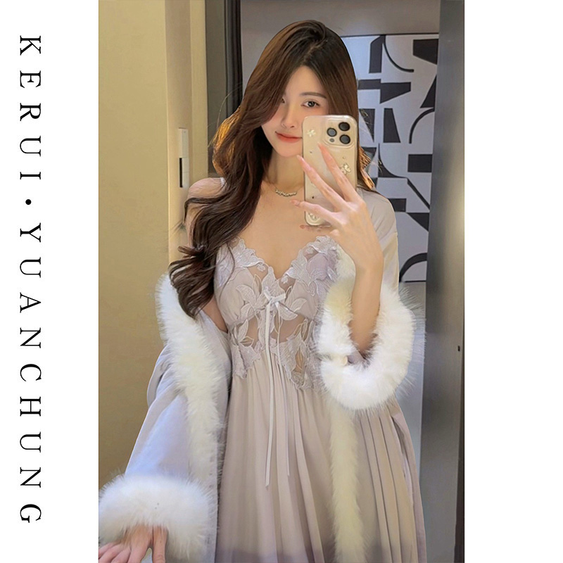【克拉Crush】秋冬法式加绒睡袍吊带女性感纯欲高级新款成熟贵妇