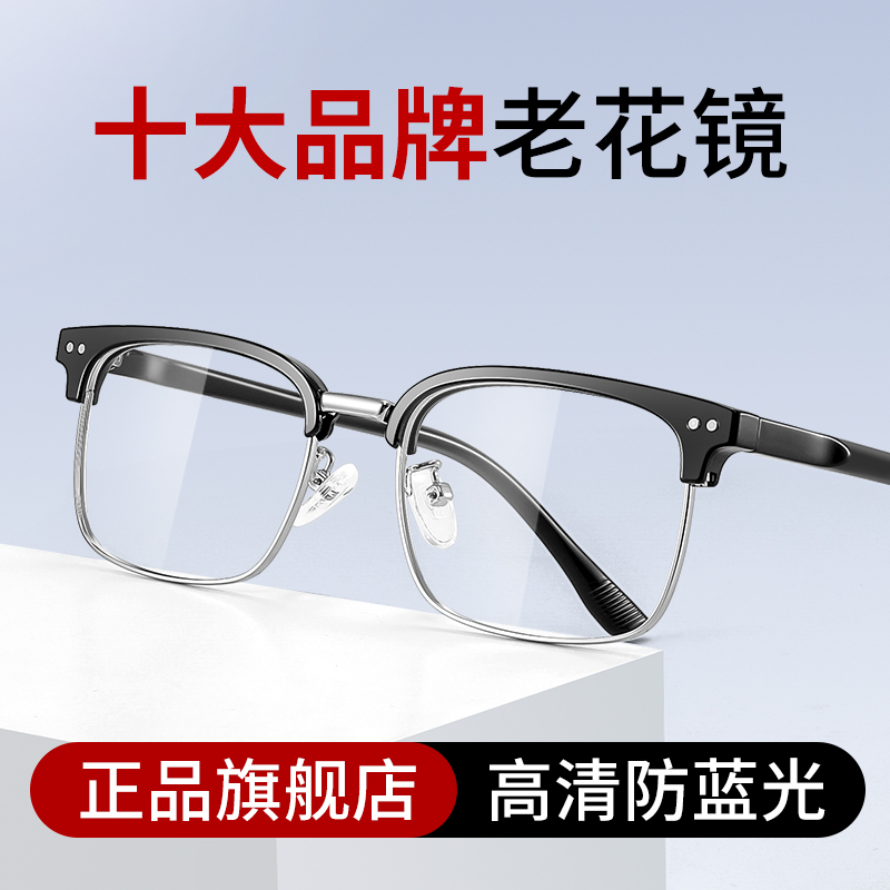 十大品牌男士老花镜高档正品官方旗舰店花镜高清防蓝光抗疲劳眼镜