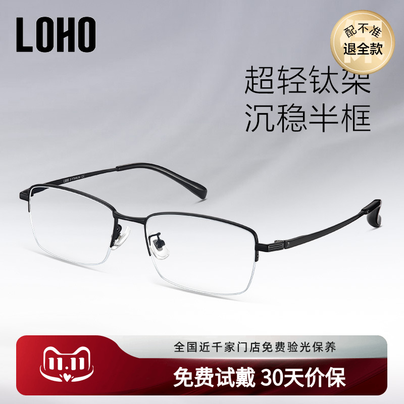 LOHO半框近视眼镜男款黑框可配度数眼镜架全钛防蓝光抗疲劳眼镜框