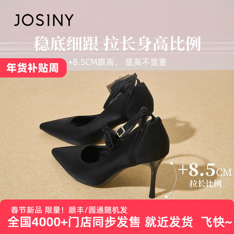 卓诗尼2025秋季新款尖头黑色高跟鞋细跟女外穿法式浅口单鞋配裙子