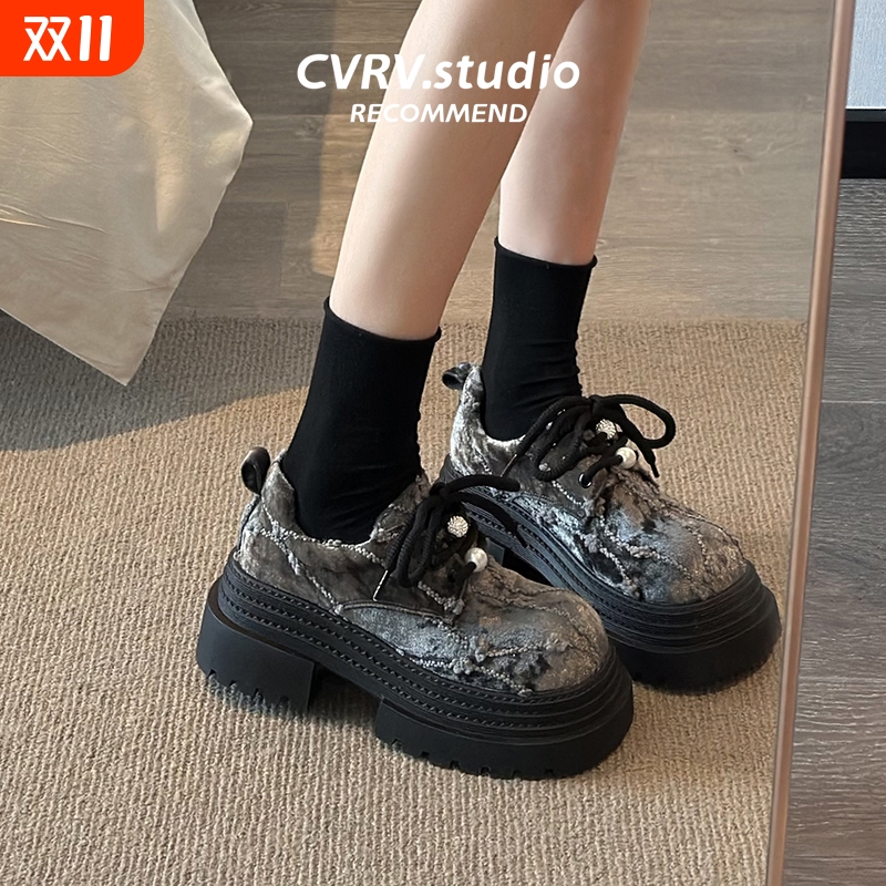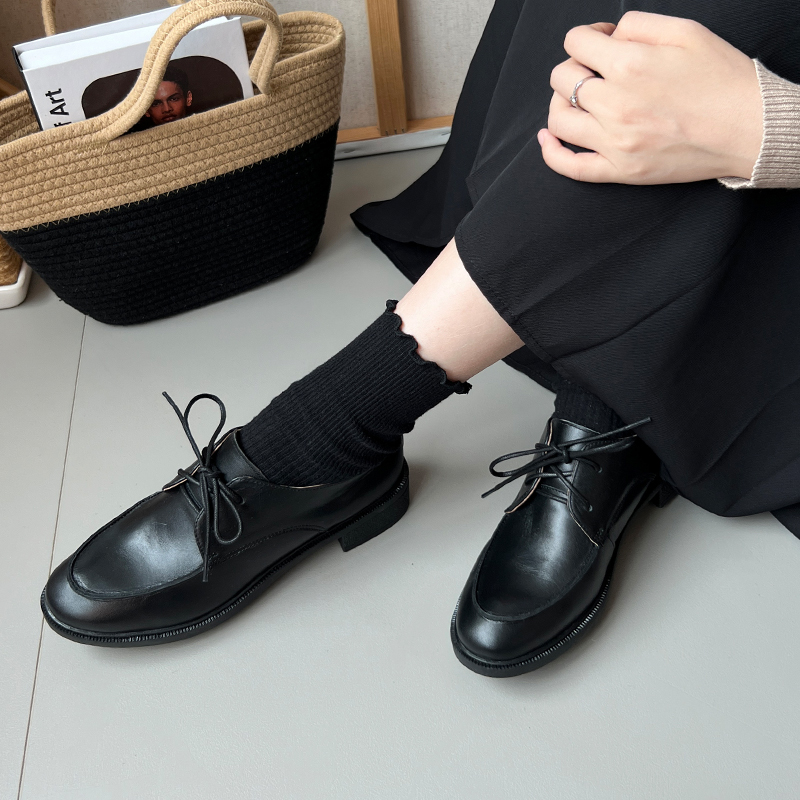 小sun家 英伦风复古厚底百搭系带小皮鞋女2025秋新款日系jk配裙子