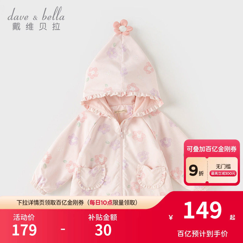 戴维贝拉女童外套春季新款儿童薄风衣连帽女宝宝防风衣服婴儿童装
