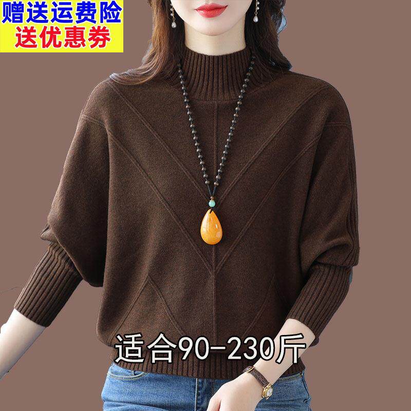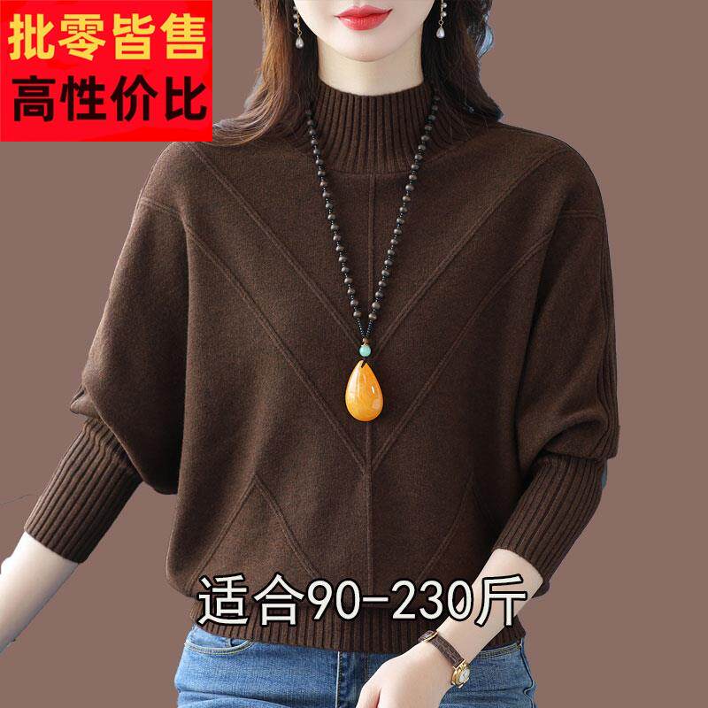 秋冬中长款毛衣套头女韩版宽松蝙蝠衫针织衫加厚外套高领女装百搭