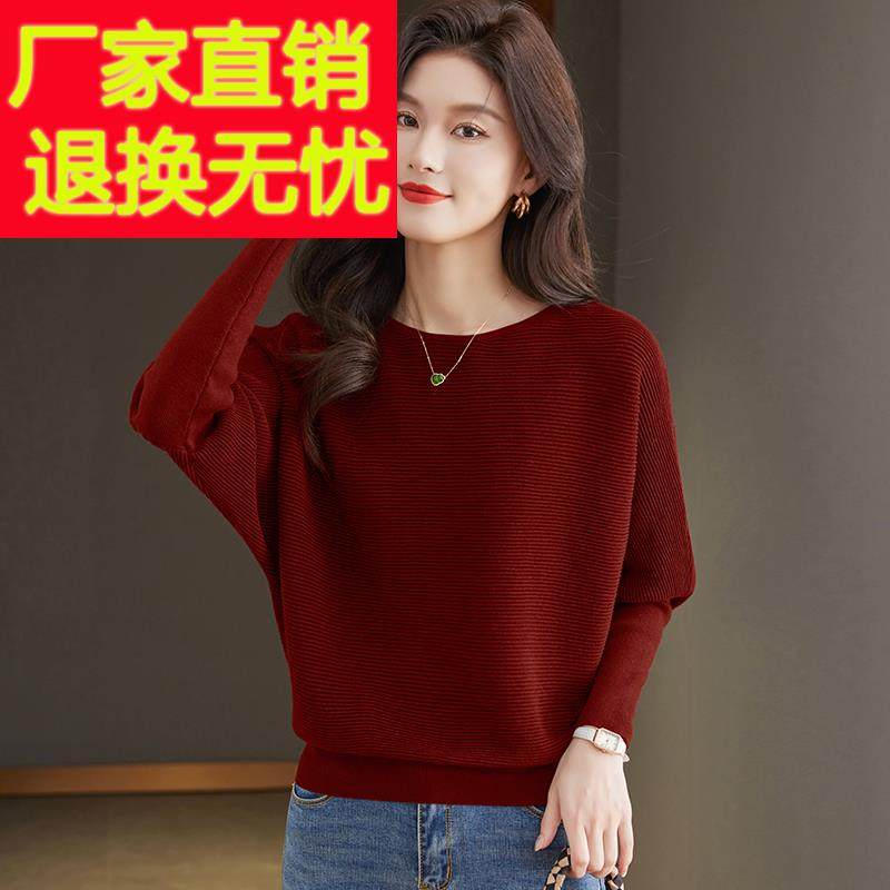 蝙蝠衫毛衣女外穿2024秋冬新款韩版针织衫上衣宽松遮肚子打底衫
