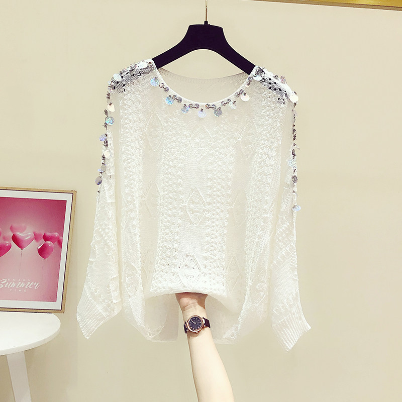 2025春秋新款韩版重工亮片圆领蝙蝠袖慵懒风毛衣女休闲显瘦针织衫
