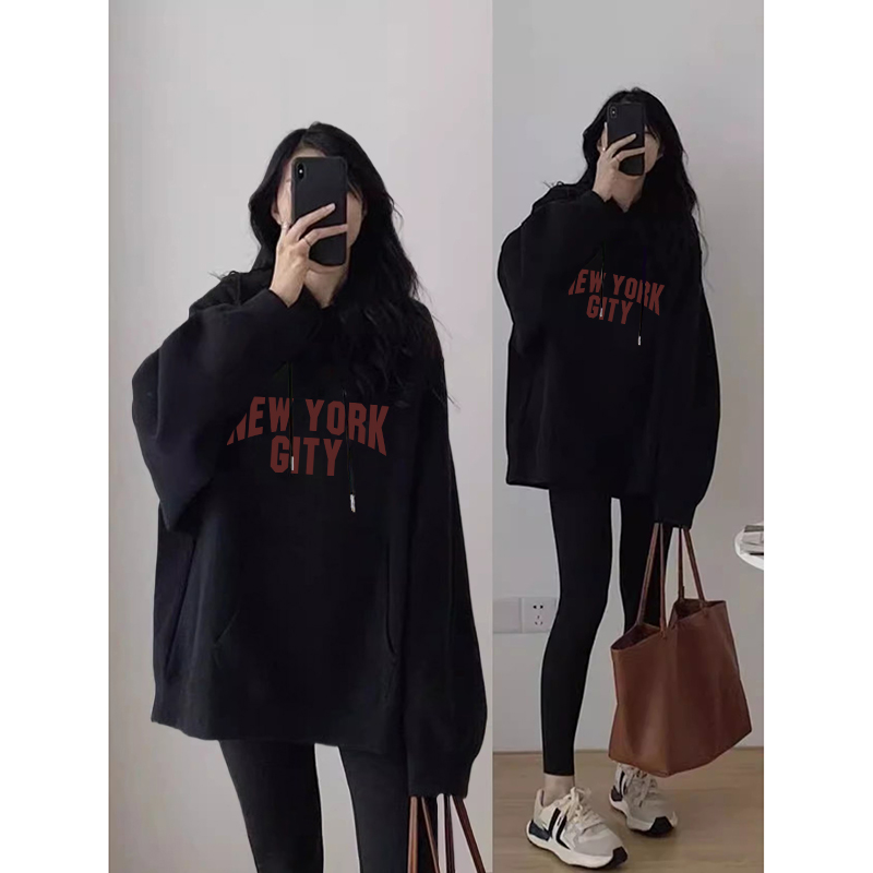 - 连帽卫衣女加绒宽松bf 韩版加厚