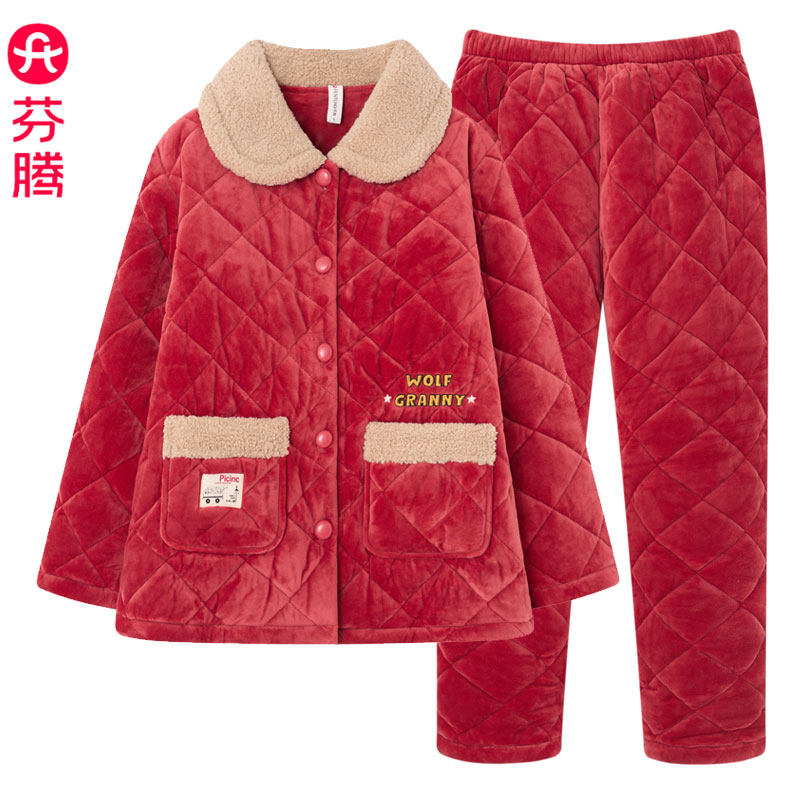 - 珊瑚绒夹棉睡衣女