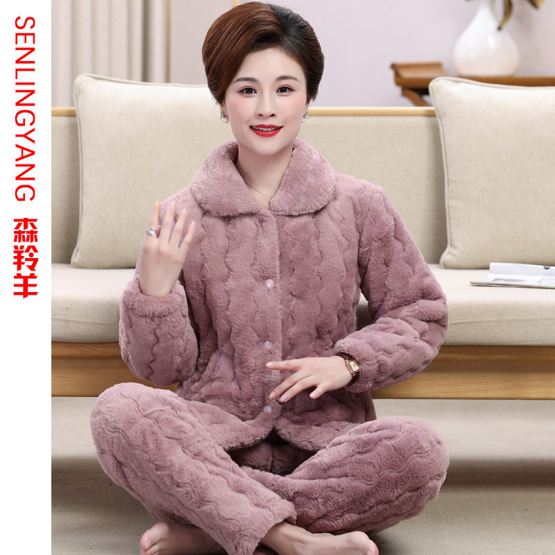- 冬季加厚珊瑚绒睡衣女冬