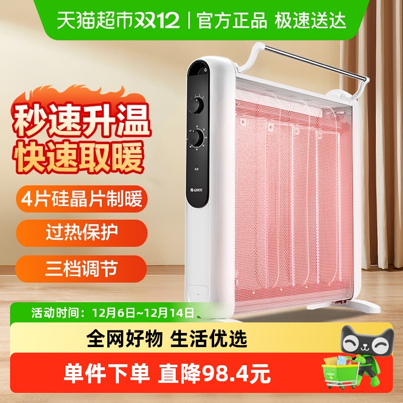 格力取暖器家用节能电暖气片省电电暖器速热烤火炉硅晶电热膜低噪