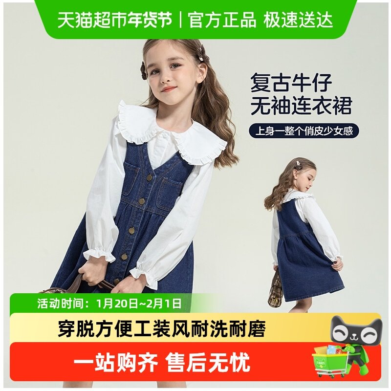 左西女童连衣裙春装套装2026新款儿童牛仔裙女孩超好看背带裙子潮