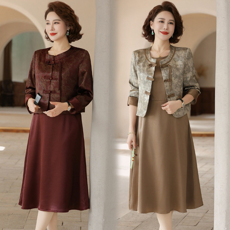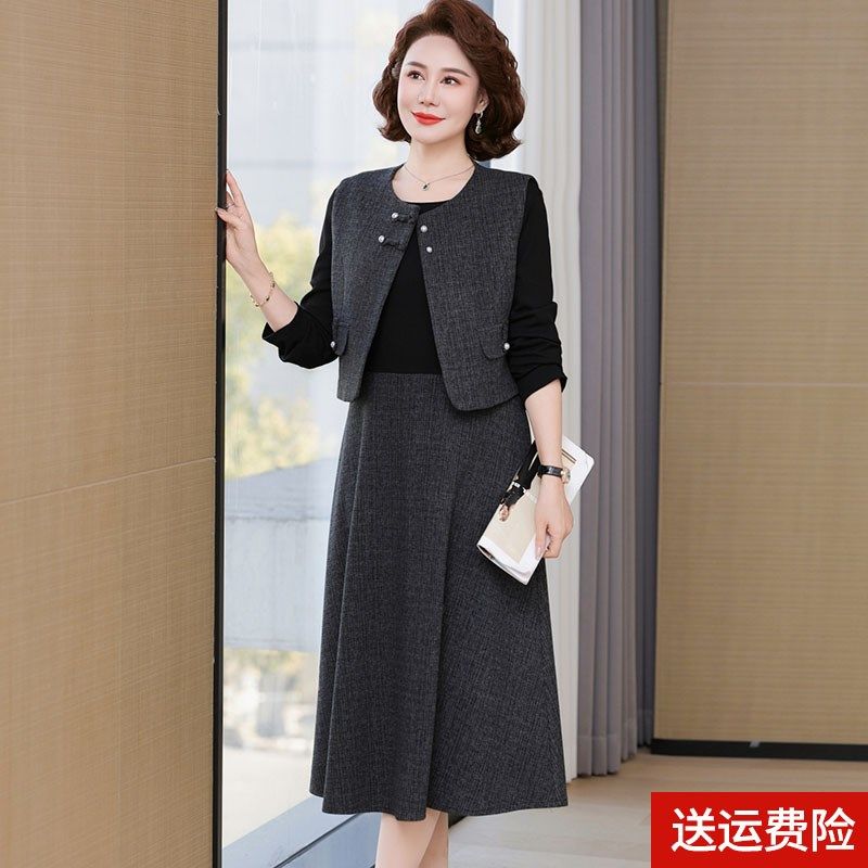 中年妈妈春装套装连衣裙洋气时尚新款50岁中老年女春秋裙子两件套