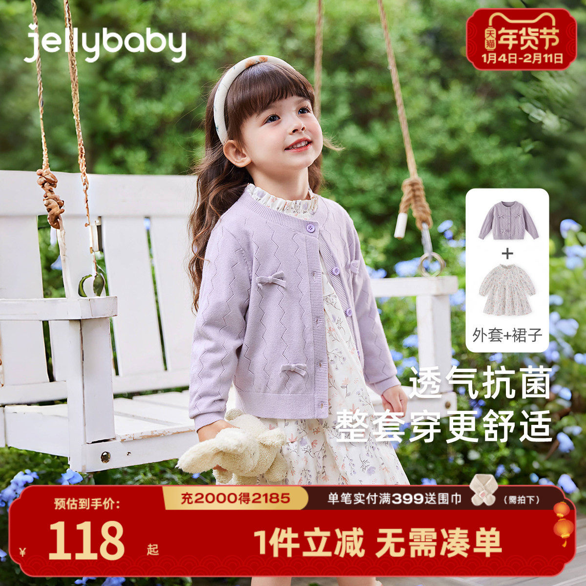 班喜迪女童连衣裙春装儿童公主裙开衫套装宝宝周岁礼服秋冬拜年服