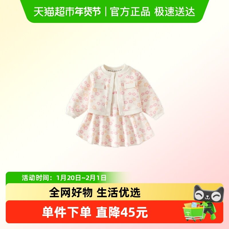 巴拉巴拉女童连衣裙纯棉内里套装大童长裙儿童新年款开衫春装童装