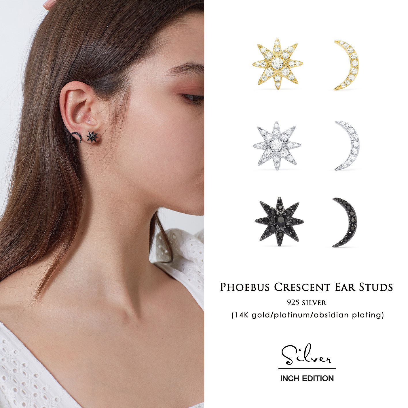 INCH EDITION 2022新款 925银饰太阳新月耳钉金银黑三色木兰品牌