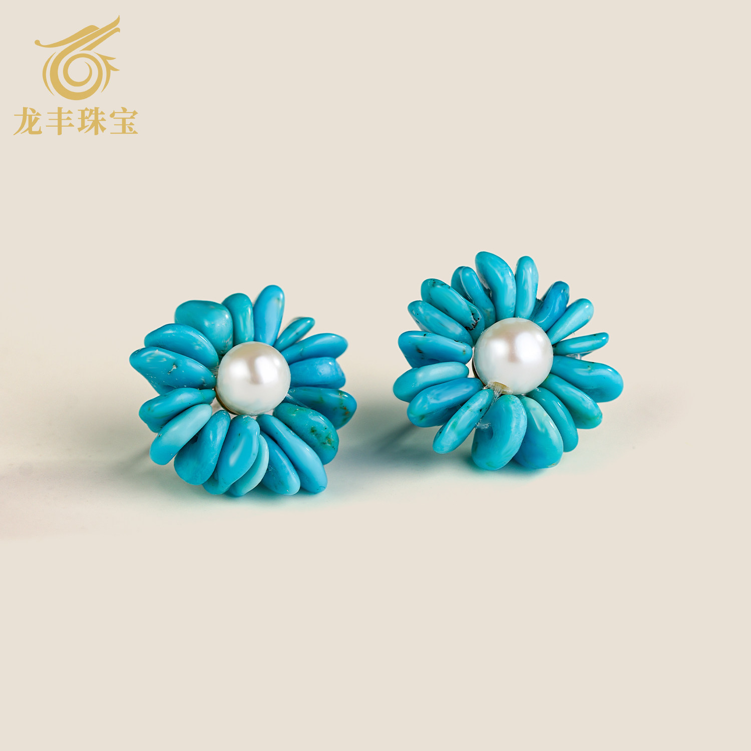 龙丰绿松轩正品天然绿松石耳钉s925银太阳花朵保真高瓷耳饰高级感