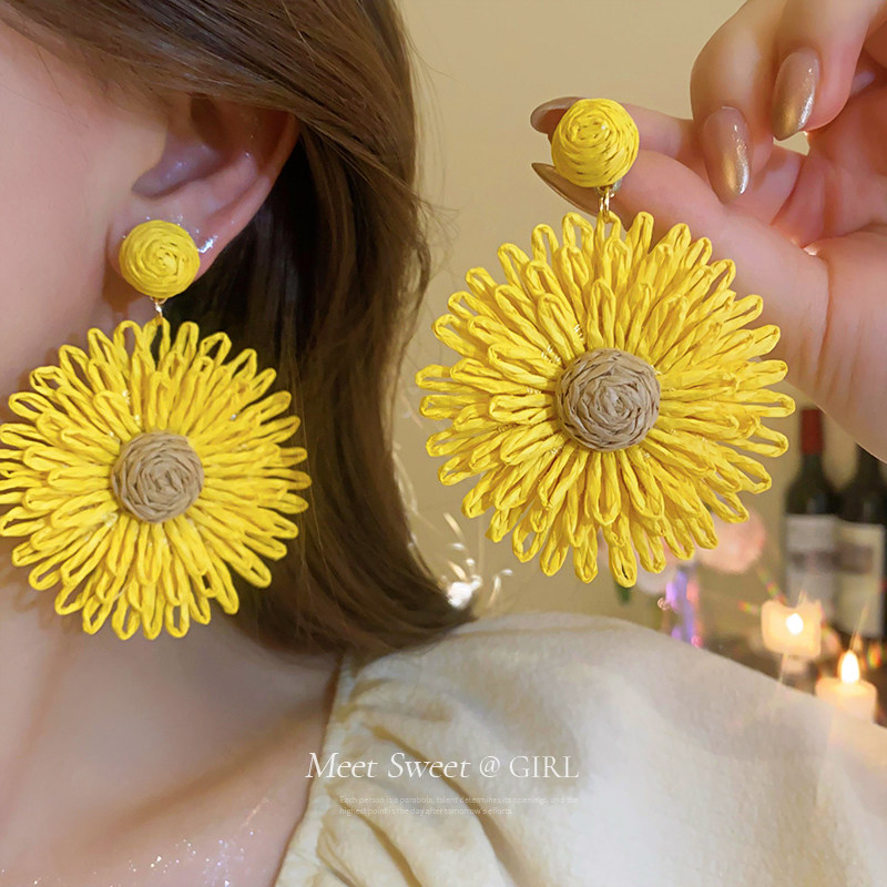 岛屿花园~手工编织太阳花朵耳环雏菊花度假风耳饰女气质个性耳钉