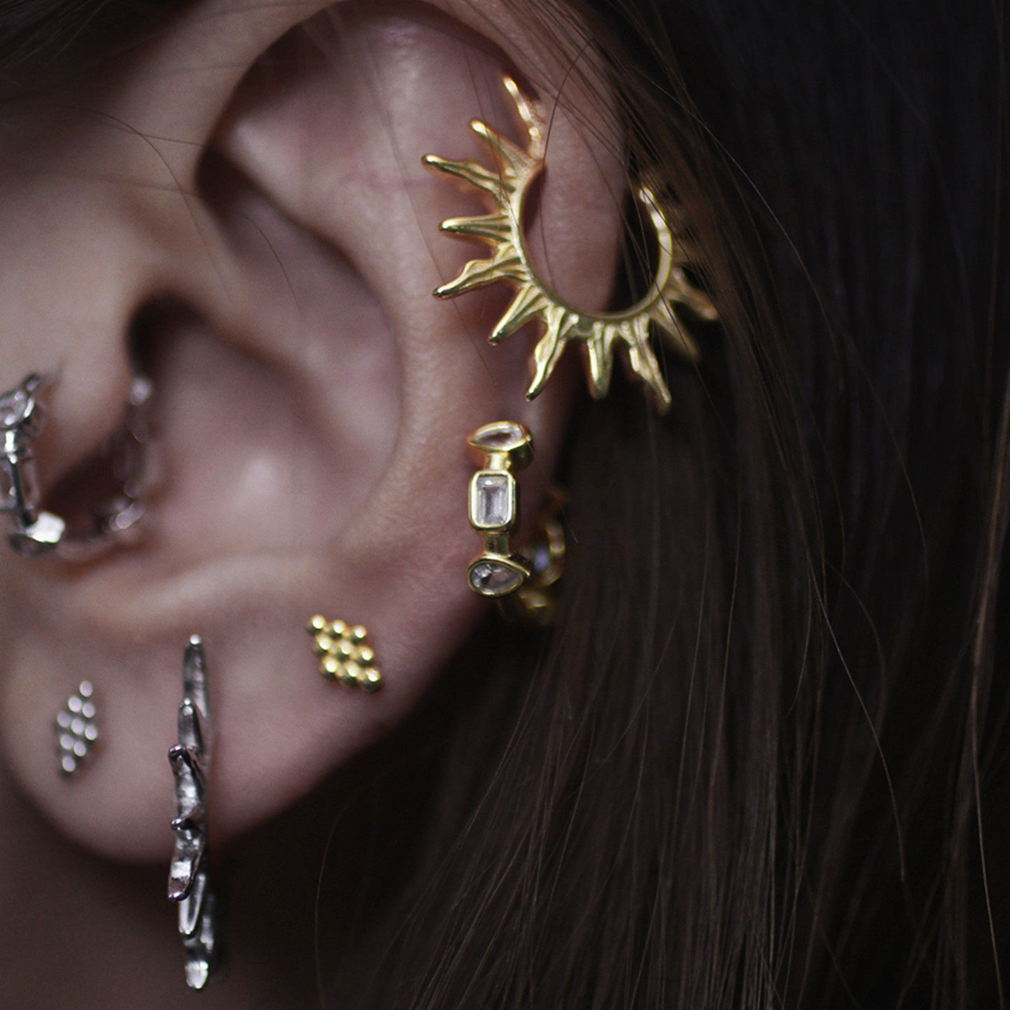 芒星闪耀太阳耳骨环原创夸张设计感耳环小众几何港风耳钉女ins风
