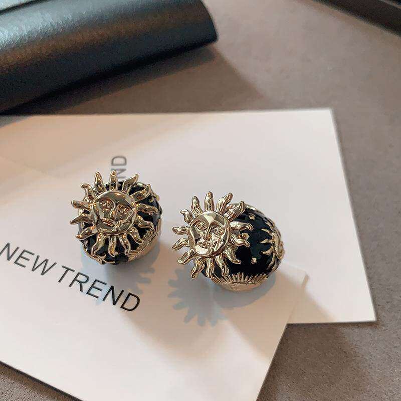 巴黎【设计师】迪家黑色太阳神耳钉高级感气质珐琅耳环双面耳饰女