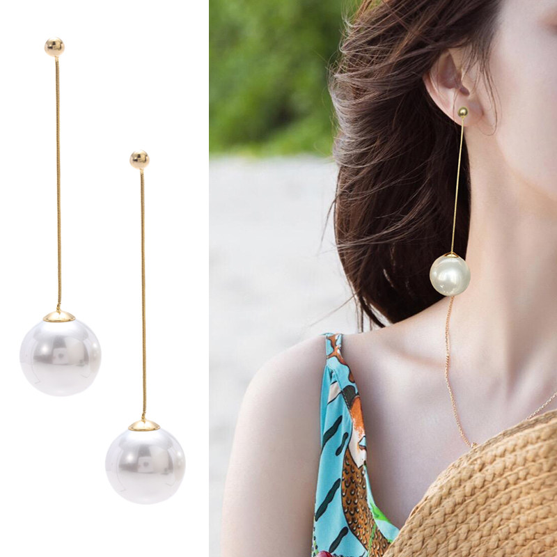 珍珠耳环女大夸张长款修饰脸型百搭大气耳坠气质网红纯银耳钉新款