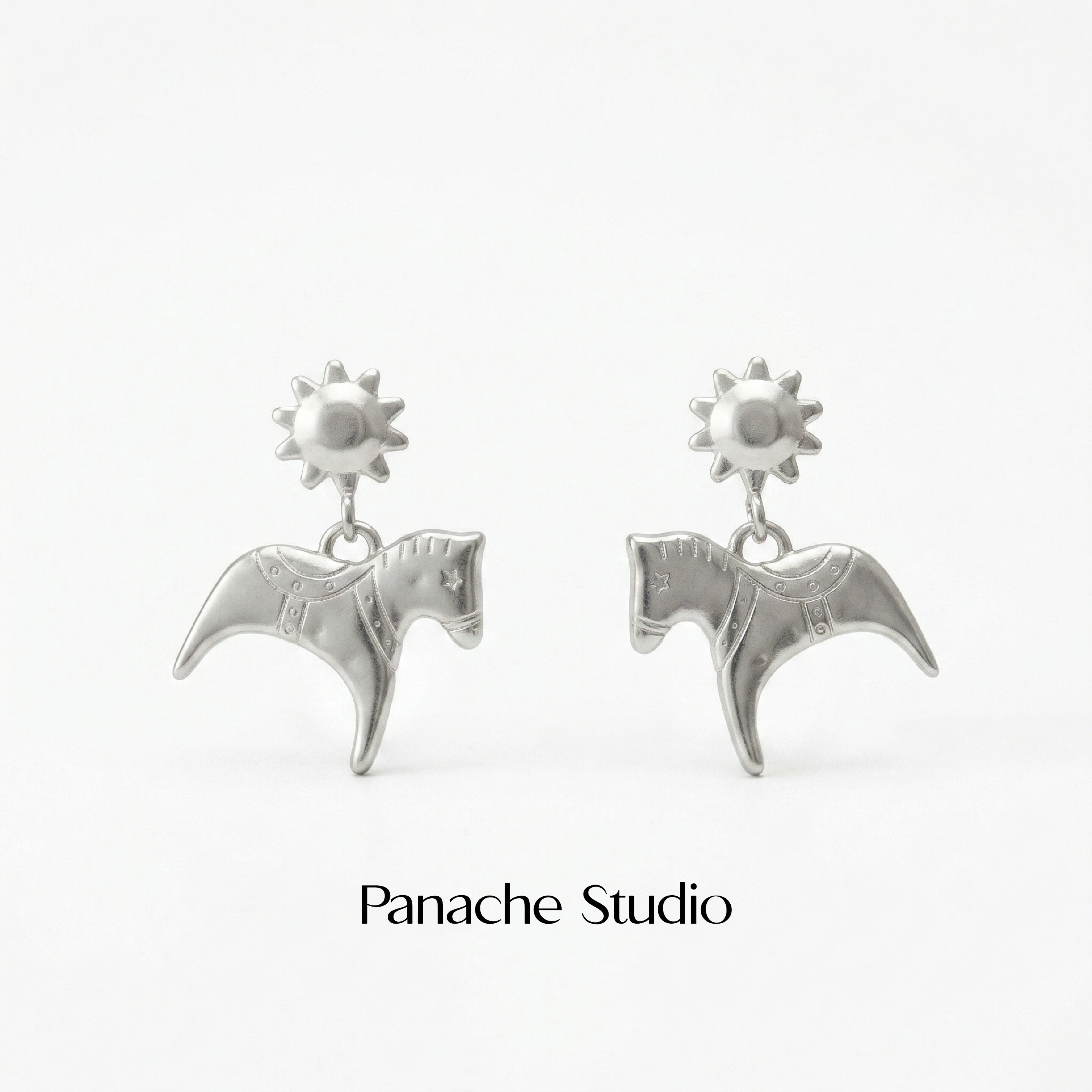 PANACHE 复古银色太阳小马吊坠耳钉 小众高级设计感通勤百搭耳环