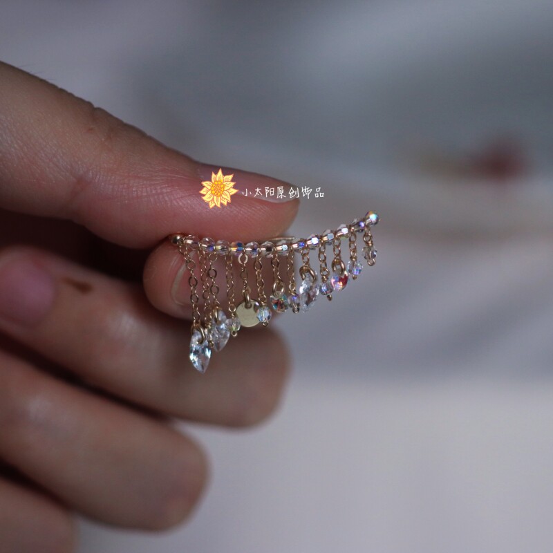 太阳原创设计闪闪锆石流苏款耳钉美国进口14K注金独特小众耳环ins