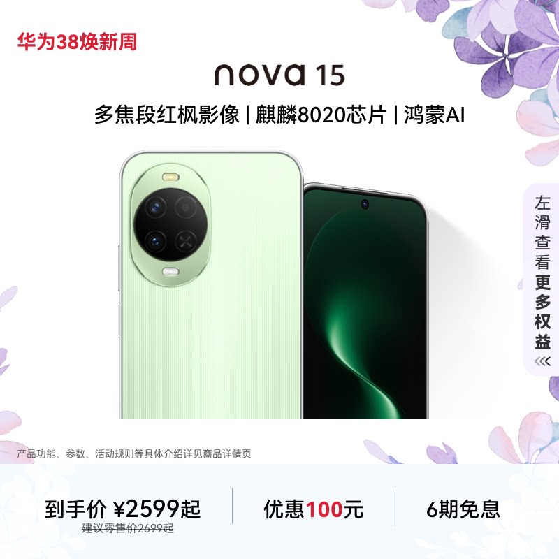 【优惠100元】华为 nova 15 麒麟8020芯片 多焦段红枫影像 北斗卫星消息 华为直面屏智能手机华为官方旗舰店