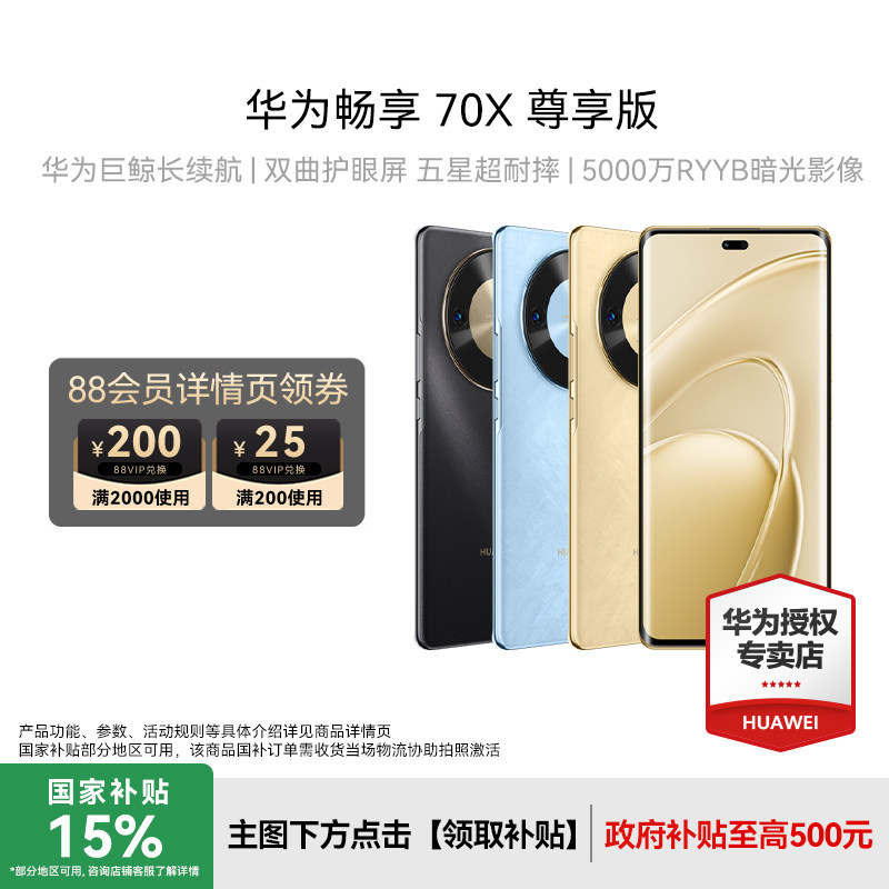 【国家补贴】华为畅享 70X 尊享版 6100mAh华为巨鲸长续航 麒麟8000芯片华为官方旗舰店鸿蒙直面屏智能手机