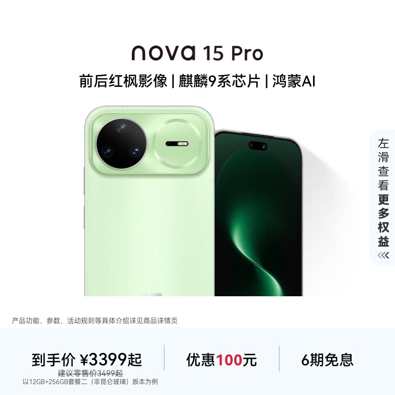 【国家补贴】华为 nova 15 Pro 麒麟9系芯片前后红枫影像6.9mm超薄机身北斗卫星消息智能手机华为官方旗舰店