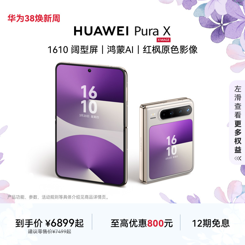 【12期免息】HUAWEI Pura X 1610阔型屏鸿蒙AI红枫原色影像华为官方旗舰店折叠屏手机智能手机
